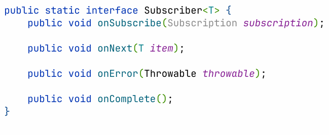 Reactive Streams는 3가지 기본 인터페이스로 구성됩니다.
