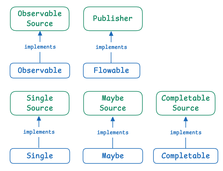 Netflix에서 시작된 RxJava는 Project Reactor와 마찬가지로 Reactive Streams 개념을 기반으로 하지만, 보다 세분화된 스트림 타입을 통해 데이터의 성격을 명확히 구분합니다. RxJava의 핵심은 "얼마나 많은 데이터를 전달하는가"와 "Back-pressure가 필요한가"에 따라 타입을 나눈다는 점입니다.