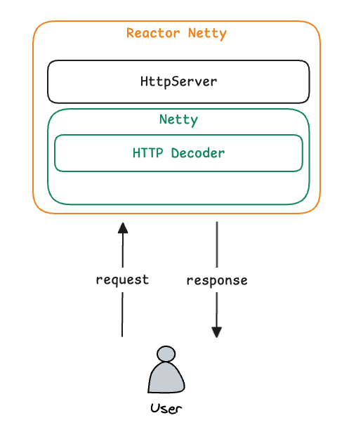 여기서 주목할 점은, HttpServer의 handle() 메서드는 원래 Reactor Netty에서 정의한 함수형 인터페이스(BiFunction<HttpServerRequest, HttpServerResponse, Publisher>)를 인자로 받는다는 점입니다. 즉, 순수하게 Reactor Netty만 사용할 경우 개발자가 이 함수형 인터페이스를 직접 구현하여 요청을 처리하도록 설계되어 있습니다.