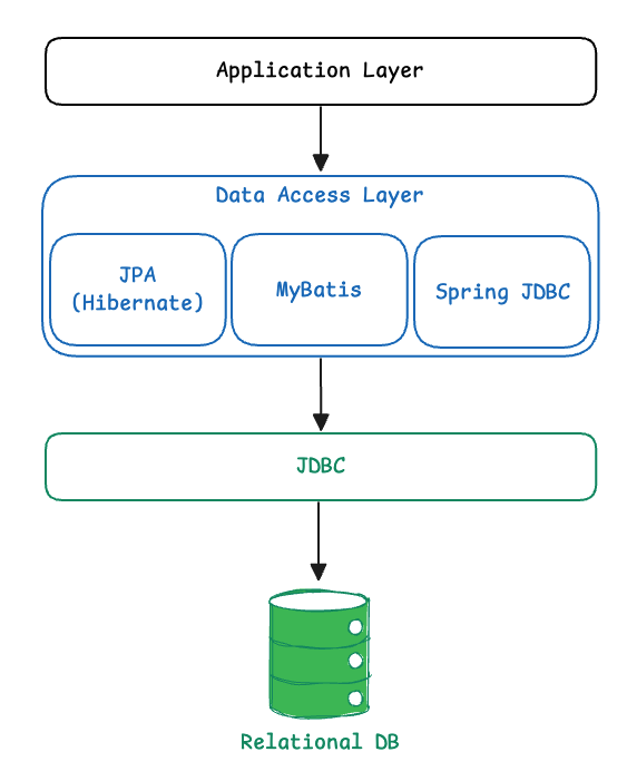 Servlet Stack에서의 데이터 계층은 주로 블로킹 기반의 DB 접근 기술을 사용합니다.