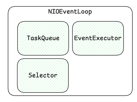 EventLoop는 Netty에서 I/O 이벤트 처리와 태스크 실행을 단일 스레드에서 담당하는 실행 단위이며, 그 기본 구현체로 NIOEventLoop입니다. 각 NIOEventLoop는 다음 세 가지 핵심 요소로 구성되어 있습니다.