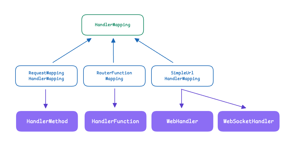 구분 방식은 HandlerMapping과 유사하지만, 차이점은 핸들러 실행 단계에서 WebHandler와 WebSocketHandler를 분리하여 각각에 맞는 처리 방식으로 실행한다는 점입니다.