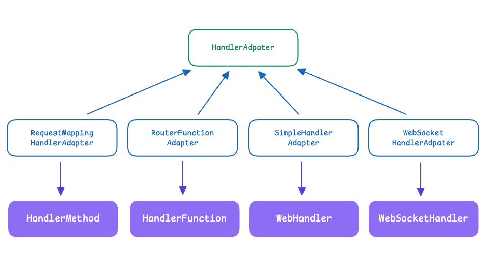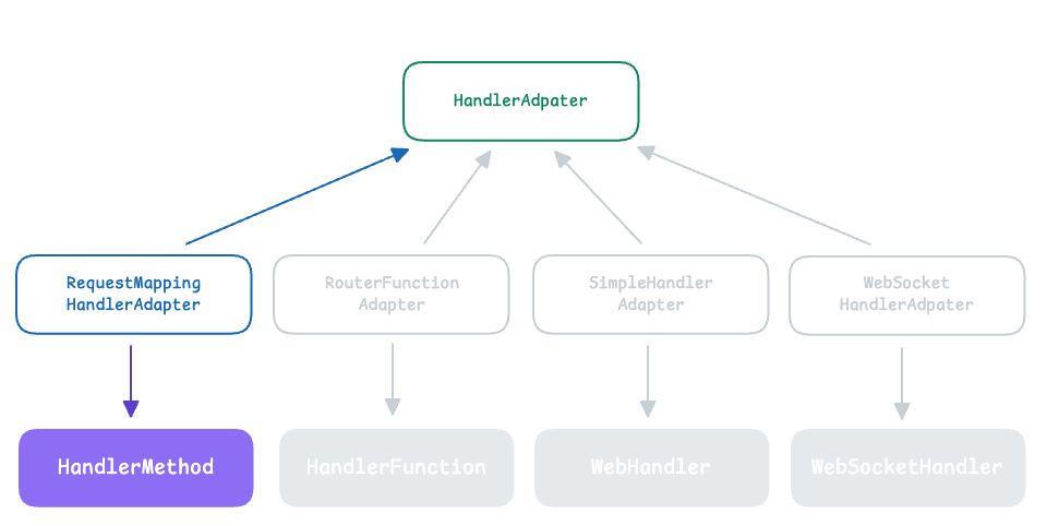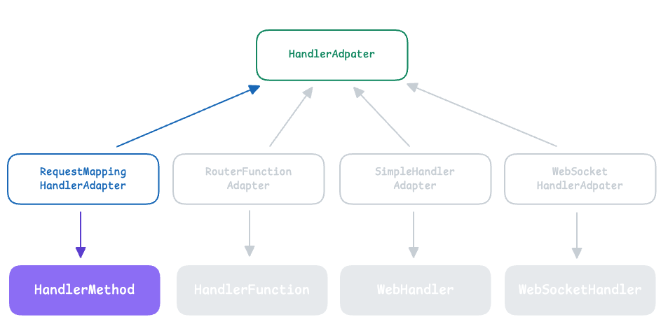 HandlerMapping이 반환환 핸들러 중 자신이 지원하는 타입의 핸들러를 판별하여 실제 실행을 담당하는 컴포넌트입니다. supports()로 처리 가능 여부를 판단하고, handle()을 통해 요청을 실행한 뒤 HandlerResult를 반환합니다.