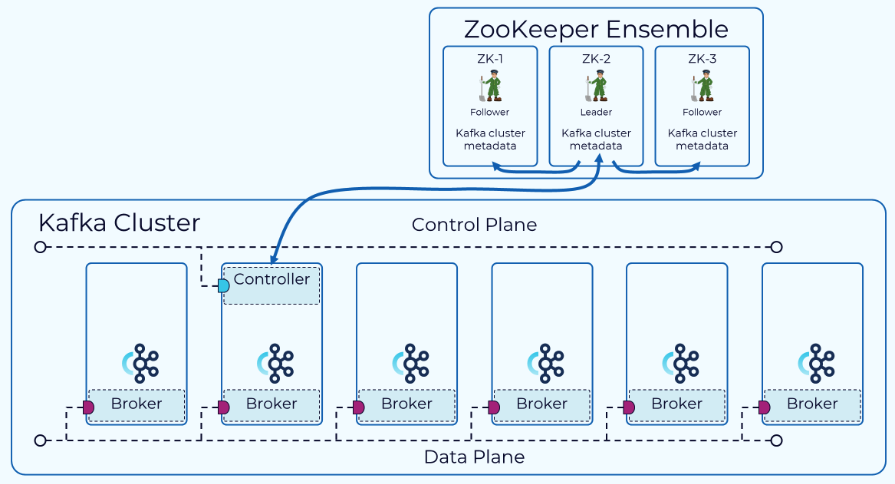 Zookeeper 앙상블은 컨트롤러를 선출해주는 역할만 수행합니다.