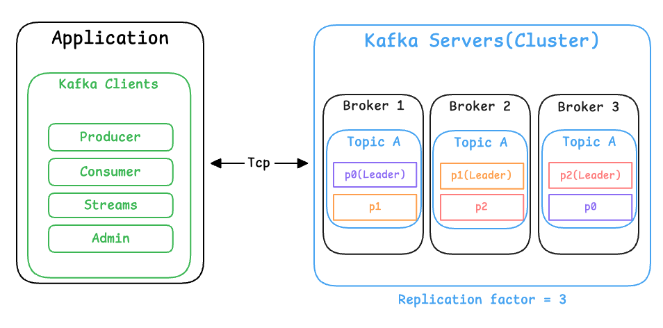 - TCP는 연결 비용이 존재하므로, Kafka는 여러 요청을 하나의 연결에서 지속적으로 처리하는 방식을 권장합니다.