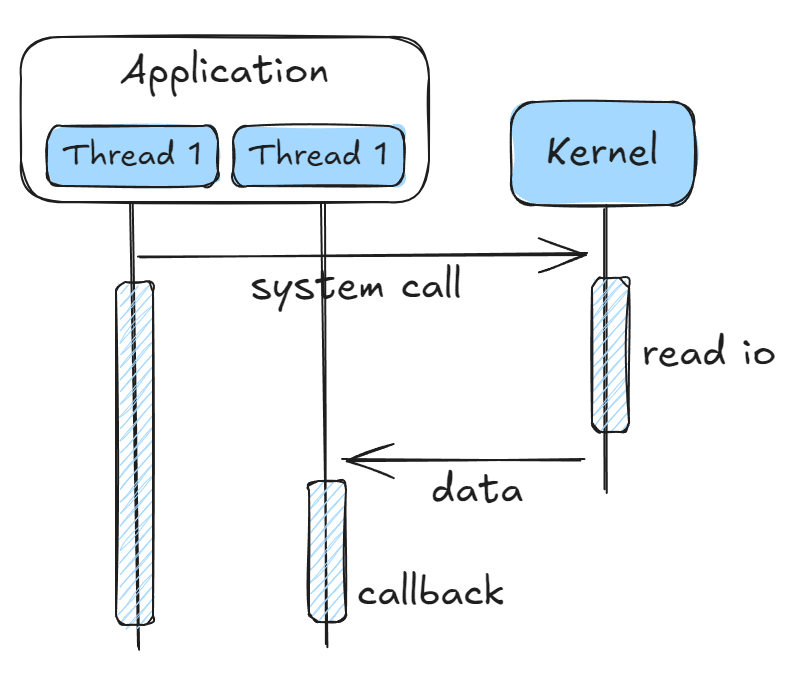 - Application의 thread2는 Kernel이 return해준 결과를 이용해서 callback을 수행한다.