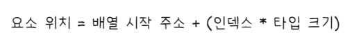 컴퓨터는 배열의 시작 주소에 '인덱스 + 타입 크기'를 더해서 배열의 요소를 찾아갑니다.