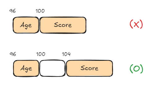 구조체 변수가 선언되면 컴퓨터는 구조체 필드를 모두 담을 수 있는 메모리 공간을 할당합니다.