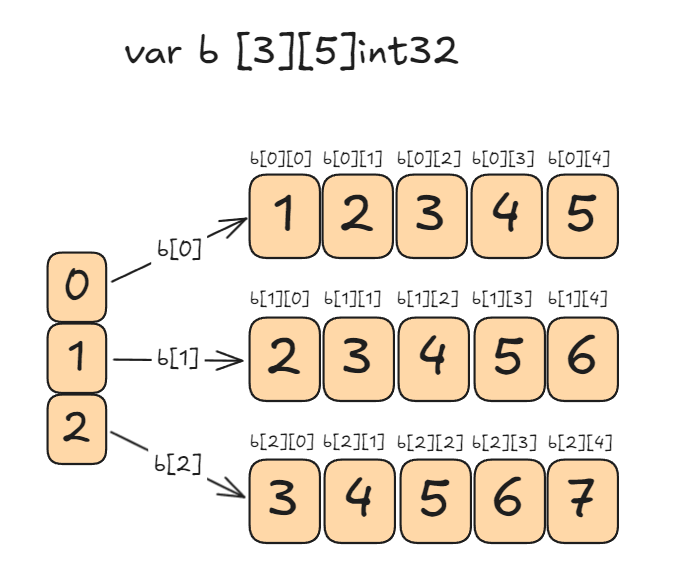 var b = [3][5]int32{