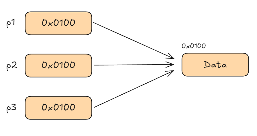 값 타입 변수는 실제 값 자체를 갖고 있는 변수를 의미하며, 참조 타입 변수는 실제 값을 갖고 있는 것이 아닌 실제 값의 메모리 주소를 가리키는 포인터를 갖고 있습니다. 그렇기 때문에 변수에 대입(복사)될 때 값 타입 변수는 실제 데이터의 크기만큼 메모리가 할당되며 복사되고, 참조 타입 변수는 실제 데이터의 크기와는 상관 없이 포인터를 필드로 갖는 내부 구조체의 크기만큼 메모리가 할당되며 복사됩니다.