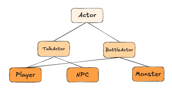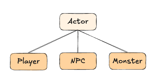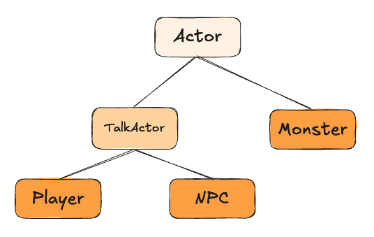 부모 객체인 Actor를 상속하는 Player, NPC, Monster 가 있습니다. 이 중에서 Player, NPC는 대화가 가능하기 때문에 대화 기능을 추가하려고 합니다.