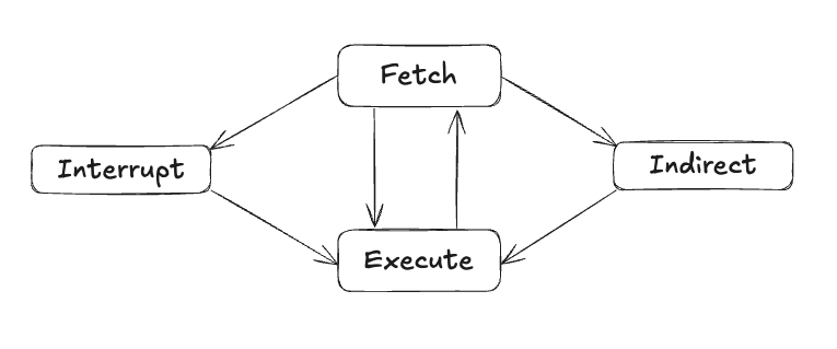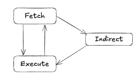 간접 사이클(Indirect Cycle)은 CPU 명령어가 메모리나 레지스터에 저장된 주소를 참조하여 데이터를 접근하는 과정에서 발생하는 추가적인 사이클을 의미합니다. 주로 간접 주소 지정 방식(Indirect Addressing)을 사용할 때 발생합니다. 즉 두 번의 메모리 접근이 필요할 때 발생합니다.