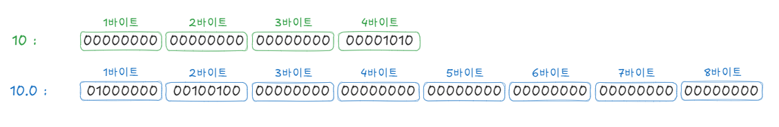 정수 상수를 컴파일하면 4바이트로 표현됩니다. 반면, 실수 상수는 8바이트로 표현됩니다.