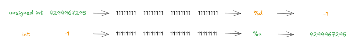 Java와 달리 C에서는 int와 unsigned int로 구분됩니다.