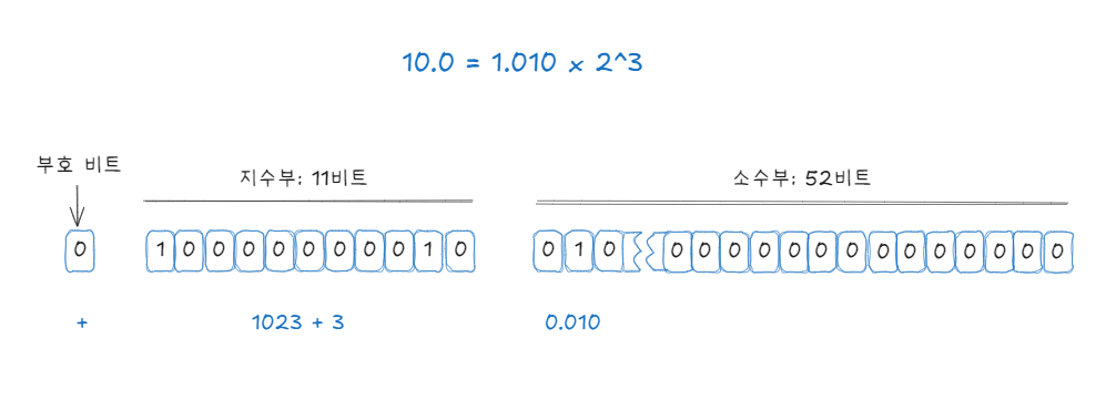 - 소수부: 나머지 52비트는 소수값을 의미합니다.
