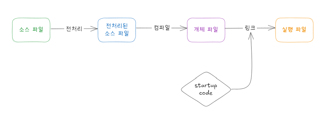 C (1) 편에서 보았던 컴파일 과정을 다시 살펴보겠습니다.