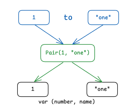 to 함수는 확장 함수로, to 함수를 사용하면 타입과 관계없이 임의의 순서쌍을 만들 수 있습니다.
