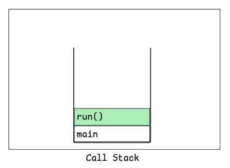 즉, main 쓰레드가 아닌 새로 생성한 쓰레드의 새로운 호출 스택에서 run()을 실행하다가 예외가 발생했다는 뜻입니다.