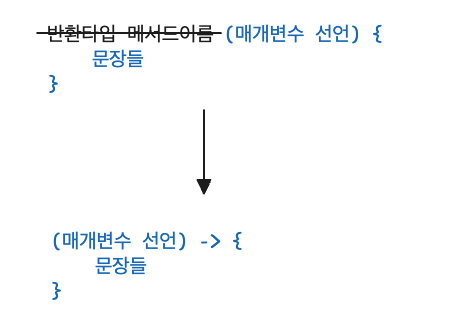 예를 들어 위 람다식 문장을 메서드로 표현하면 아래와 같습니다.