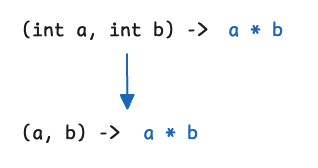 람다식에 선언된 매개변수의 타입은 추론이 가능한 경우는 생략할 수 있는데, 대부분의 경우에 생략이 가능합니다. 람다식에 반환타입이 없는 이유도 항상 추론이 가능하기 때문입니다.