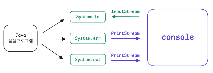 초기에는 System.in, System.out, System.err의 입출력 대상이 콘솔화면이지만, setIn(), setOut(), setErr()를 사용하면 입출력을 콘솔 이외에 다른 입출력 대상으로 변경하는 것이 가능합니다.